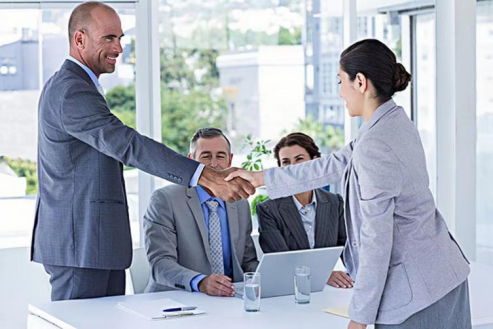 见面时要向招聘者主动打招呼问好致意,称呼应当得体。面试时,握手也是最重要的一种身体语言。专业化的握手能创造出平等、彼此信任的和谐氛围,也能让面试官感受到你对他们的尊重和诚意。