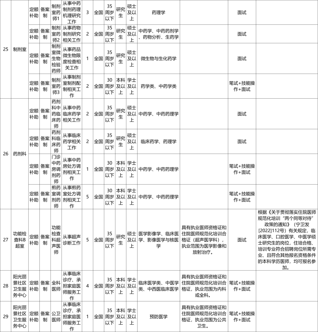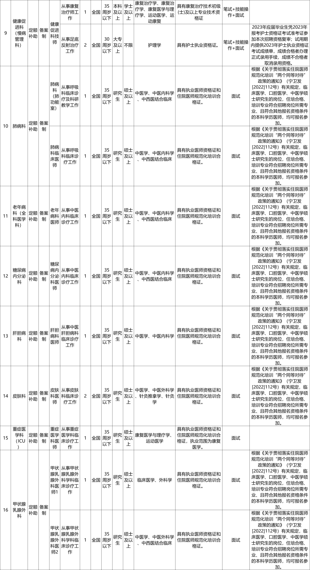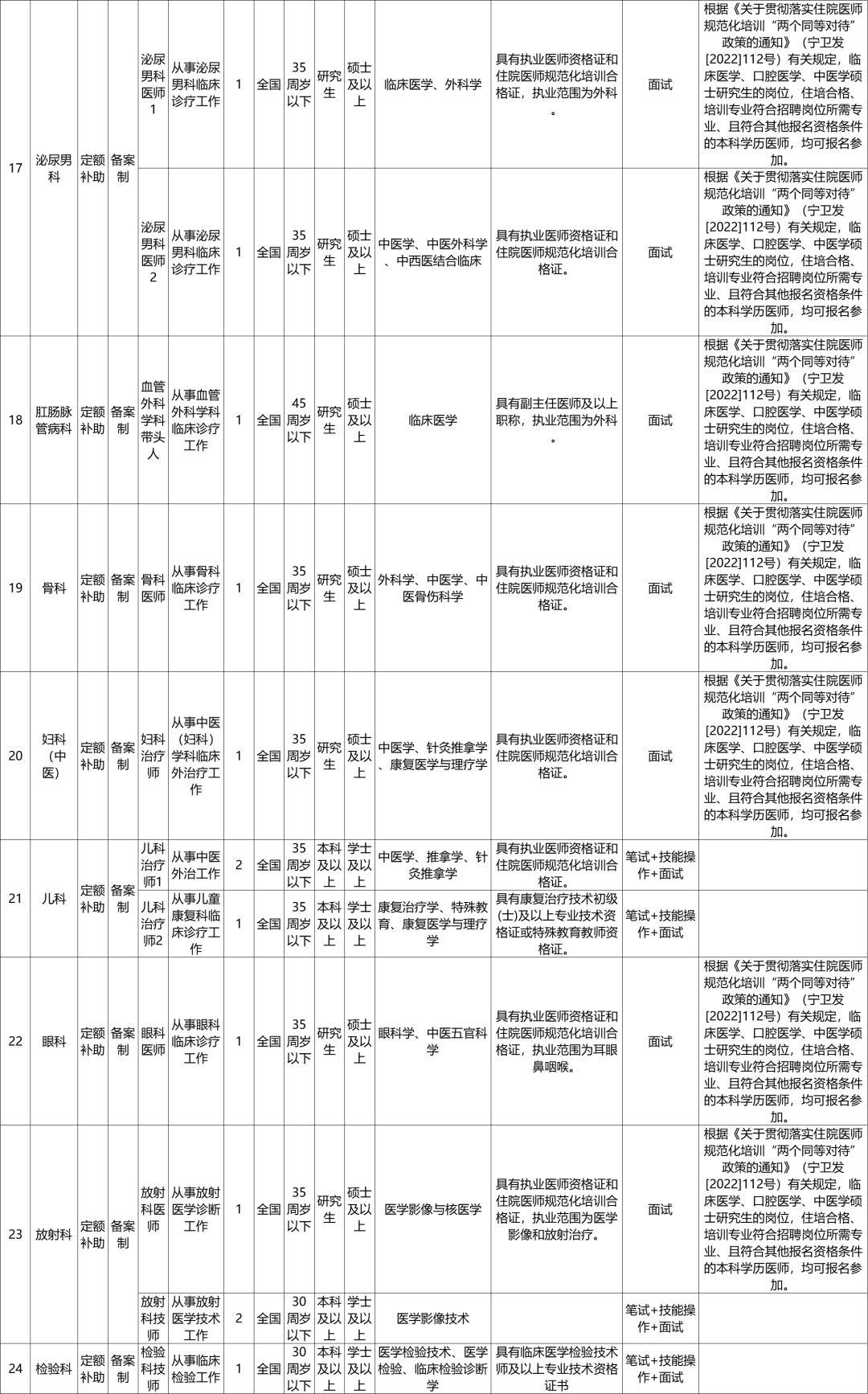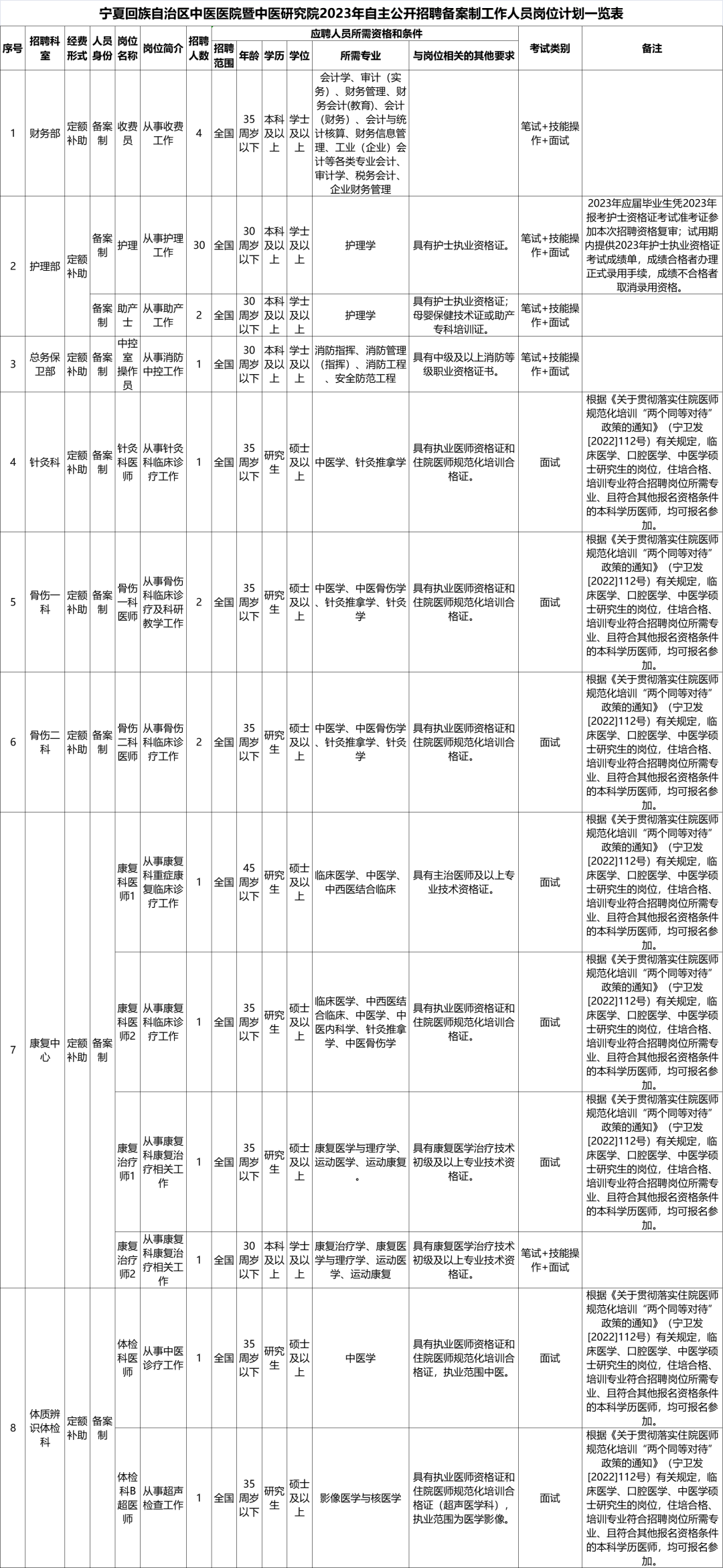 1.宁夏回族自治区中医医院暨中医研究院2023年自主公开招聘备案制工作人员岗位计划一览表