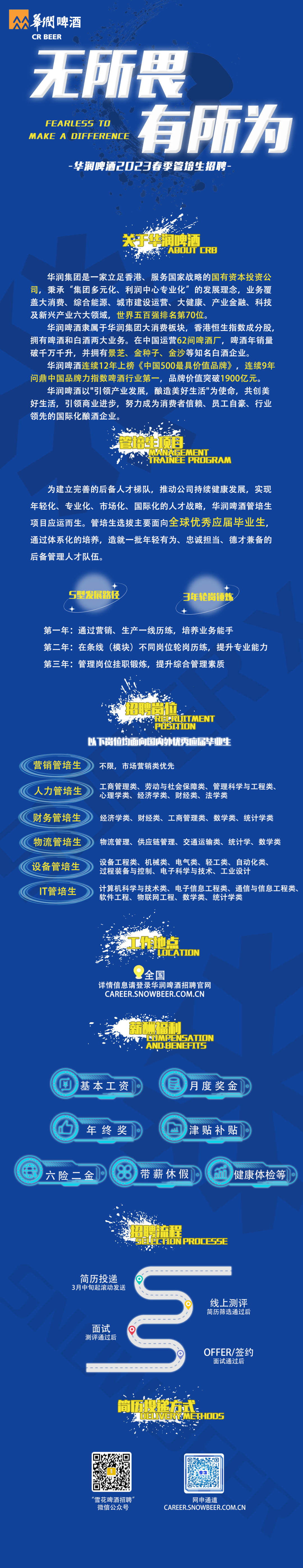 当前位置:首页>东北>【招聘信息】|华润啤酒2023春季管培生招聘正式启动!