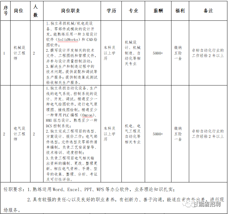 二、招聘岗位要求及待遇