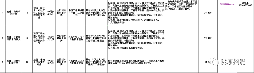 甘肃山河秀建设工程有限公司招聘工作人员岗位表