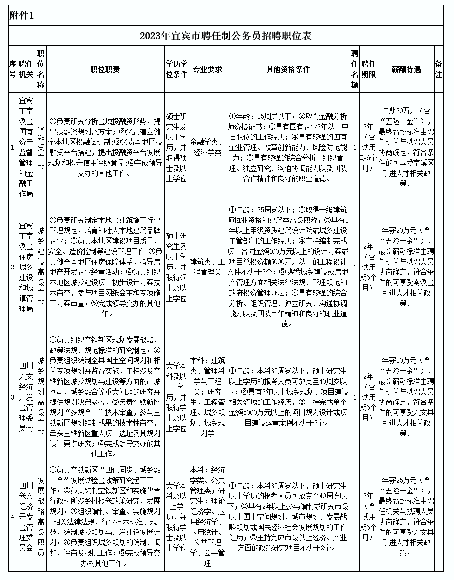 本次招聘具体职位信息、报考条件等详见《2023年宜宾市聘任制公务员招聘职位表》。