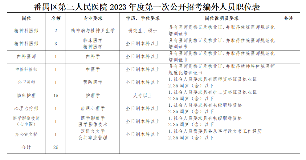 (2)《番禺区第三人民医院招考编外工作人员报名表》一式一份(报名人员通过电子邮箱提交报名资料,我院会对应发送报名表后填好后,在一张A4纸内打印完整的报名表,不允许分页打印)。