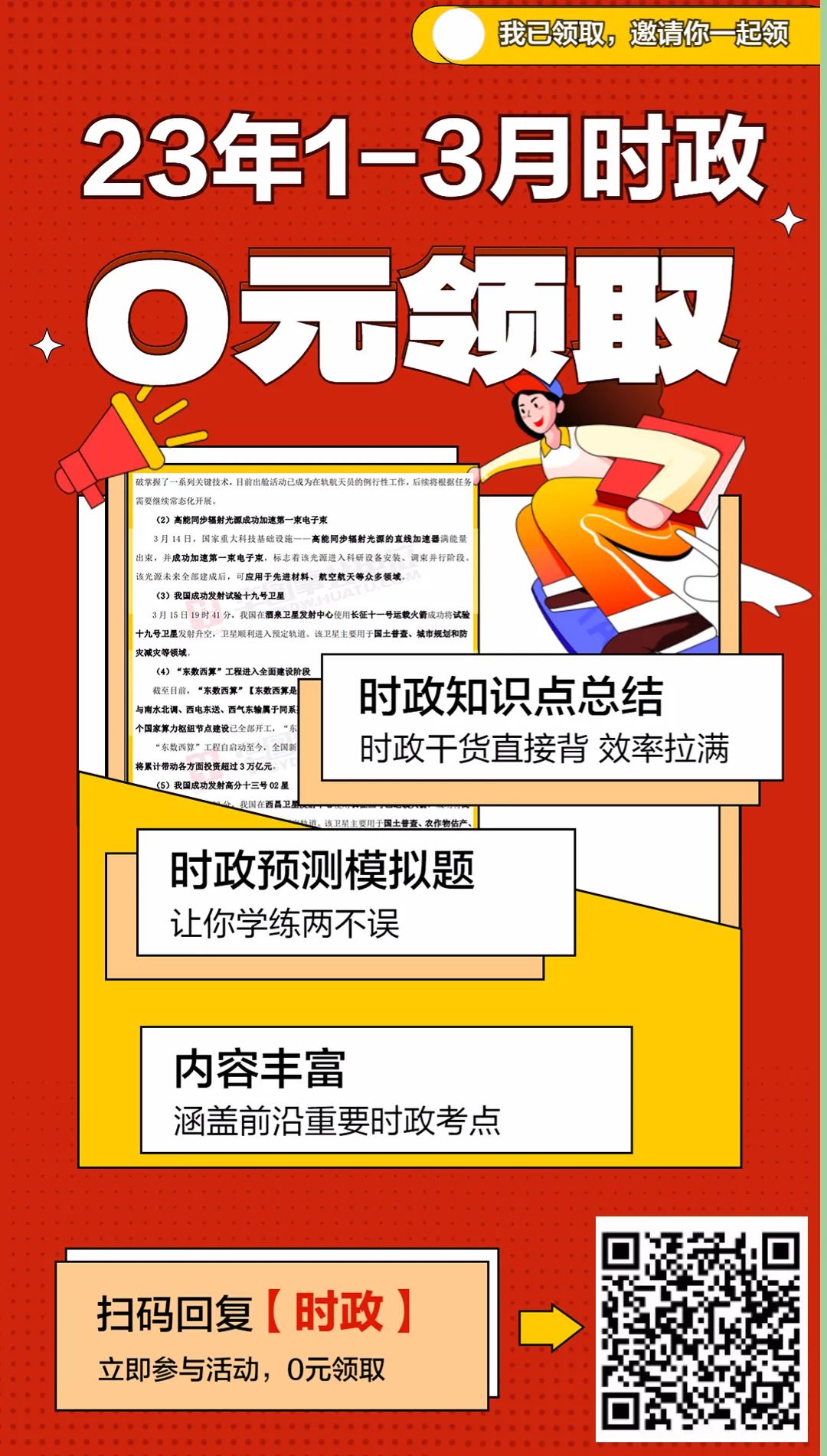 2023年1-3月时政文件+模拟题新鲜出炉喽!!!时政知识点总结+预测模拟题内容丰富全面了解时政 抢先一步火速扫码回复:时政即可免费领取全部资料