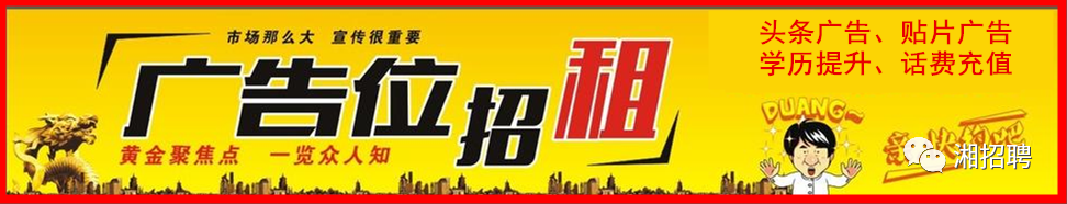 本公众号主要发布湖南及周边地区教师资格、普通话、事业单位、教师招聘、国企招聘等公告,工作岗位含金量高,请转发本文给大学生或其他找工作的亲戚朋友。声明:“湘招聘”微信公众号刊载此文,出于传递更多招聘信息之目的。若来源标注错误或侵犯了您的合法权益,请及时与我们联系,我们将及时更正、删除或依法处理。点击>>>>>联系小编(微信号:qq2446456023)发布招聘信息!