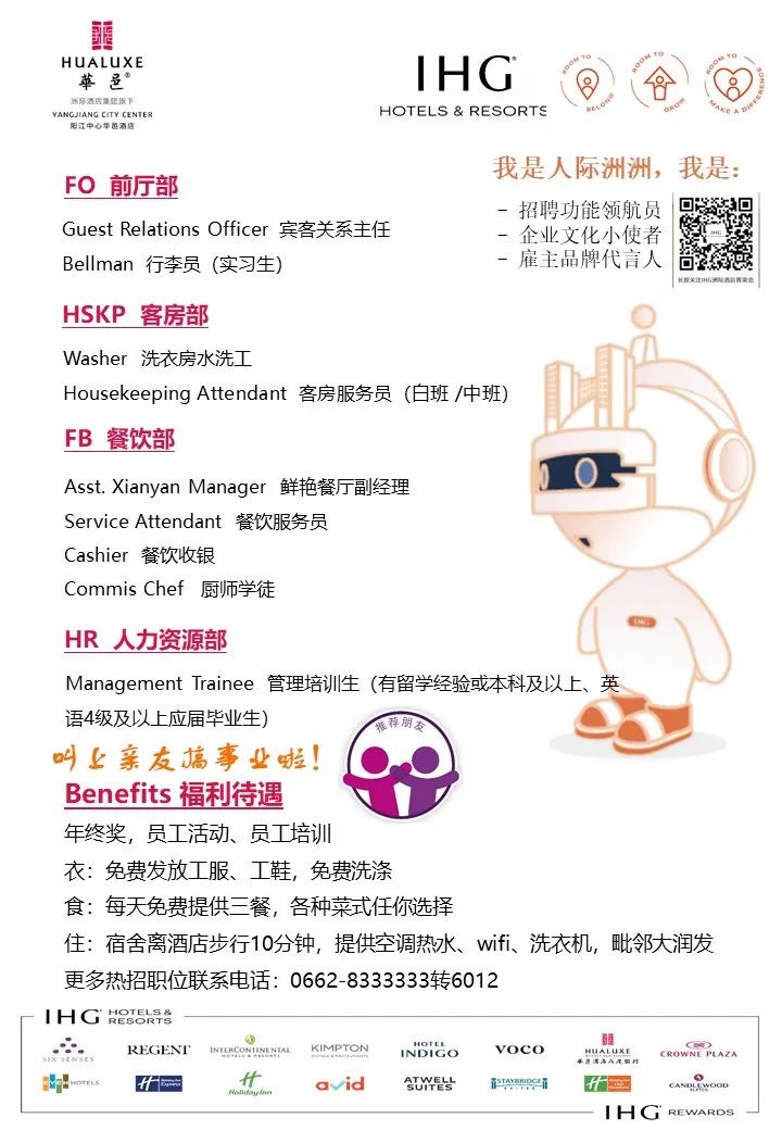 我们正在寻求优秀的人才加入阳江中心华邑酒店这个团队。在这里,我们与你畅享同洲之谊,共赴成长无际,筑就非凡天地。在多元、平等与包容的文化氛围中,每一个“你”,都是如此重要。与你同“洲”,我们将共赴无际。