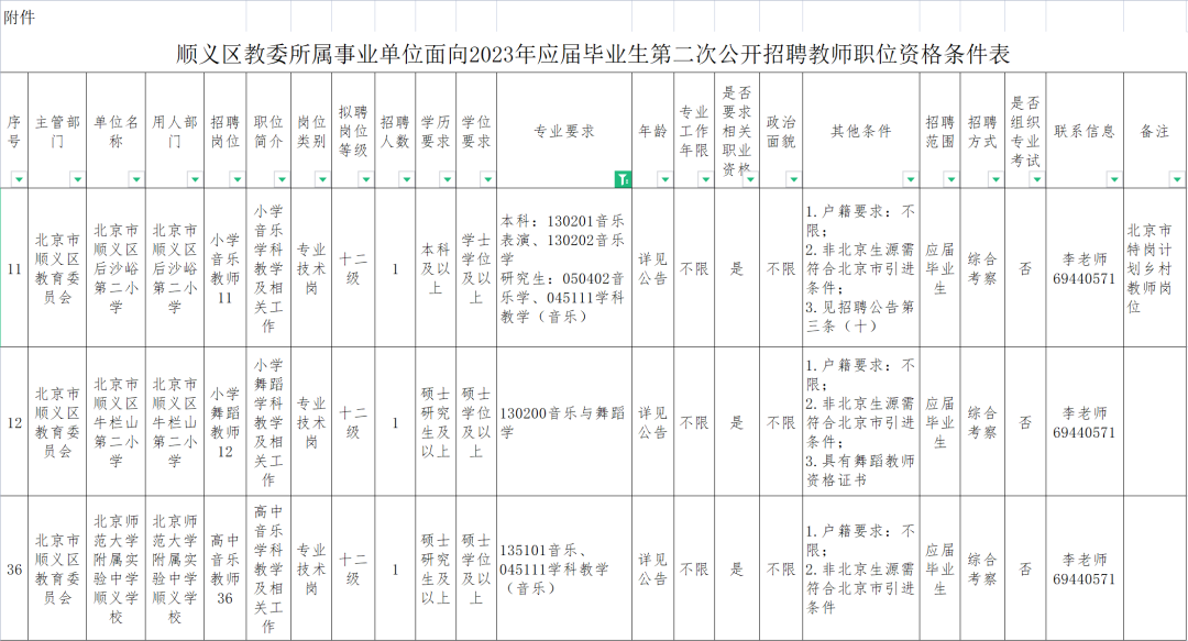 根据北京市人力资源和社会保障局《关于印发<北京市事业单位公开招聘工作人员实施办法>的通知》(京人社专技发〔2010〕102号)和《关于印发<北京市引进毕业生管理办法>的通知》(京人社毕发〔2021〕22号)文件要求,现面向2023年应届毕业生第二次公开招聘教师,相关事项公告如下: