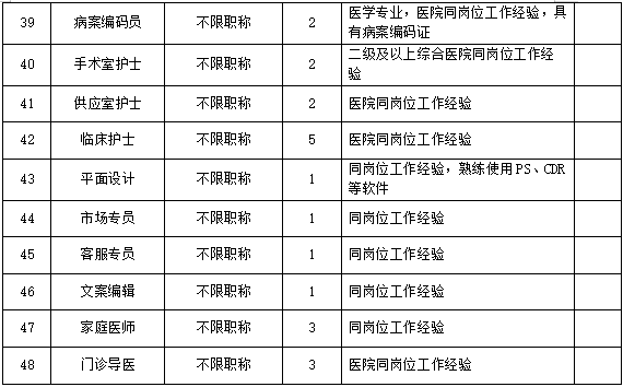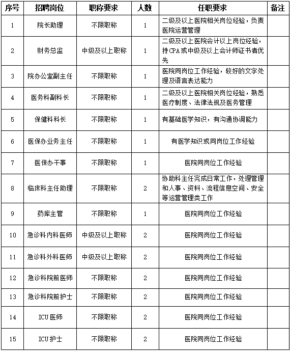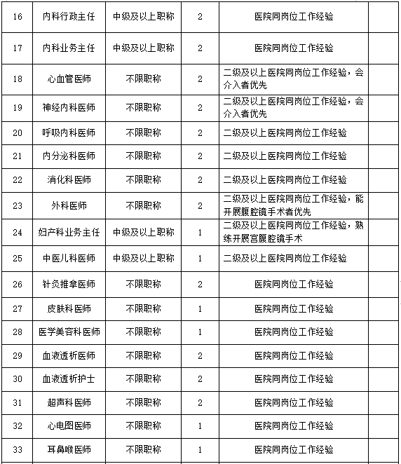 根据医院发展需要,现面向社会公开招聘以下岗位人才: