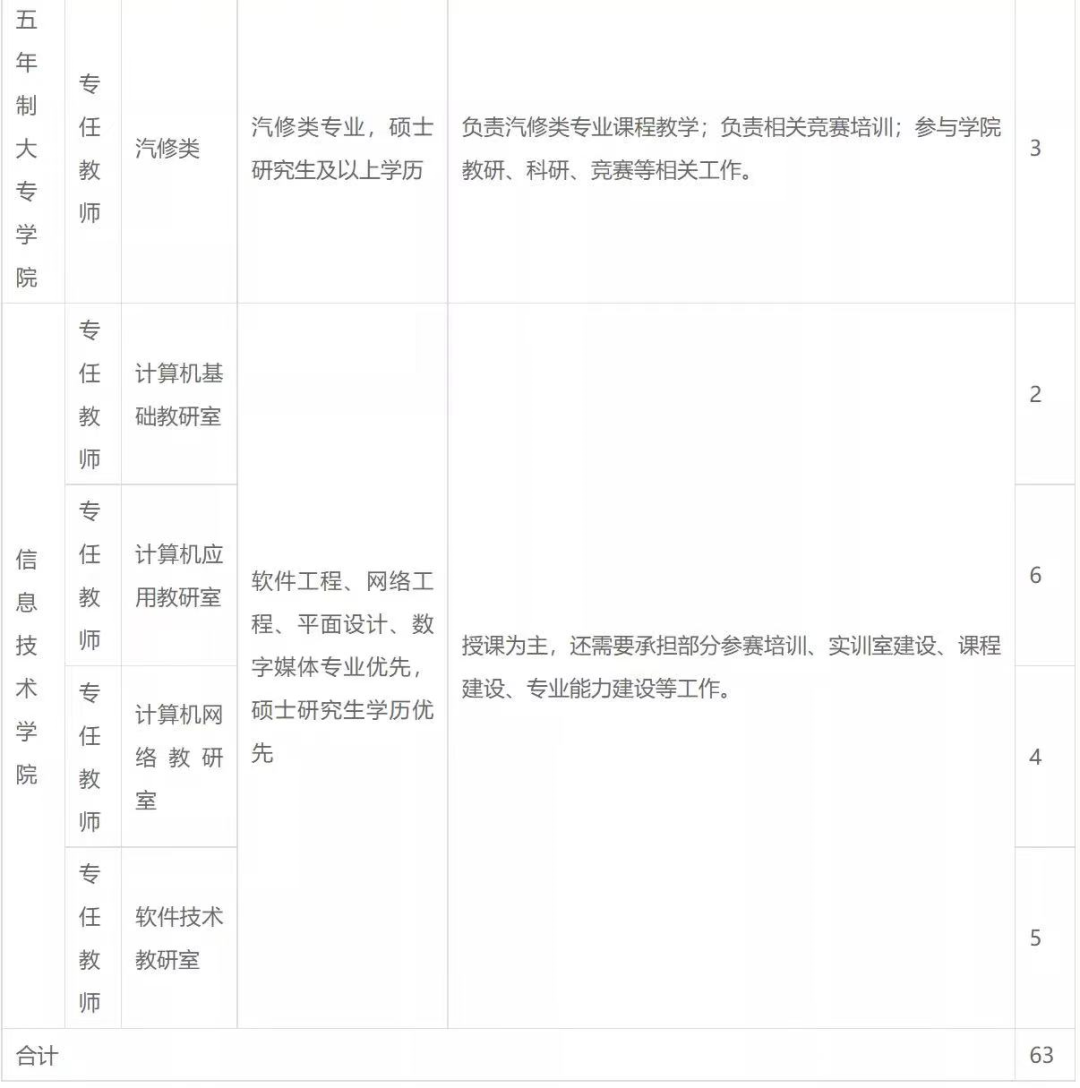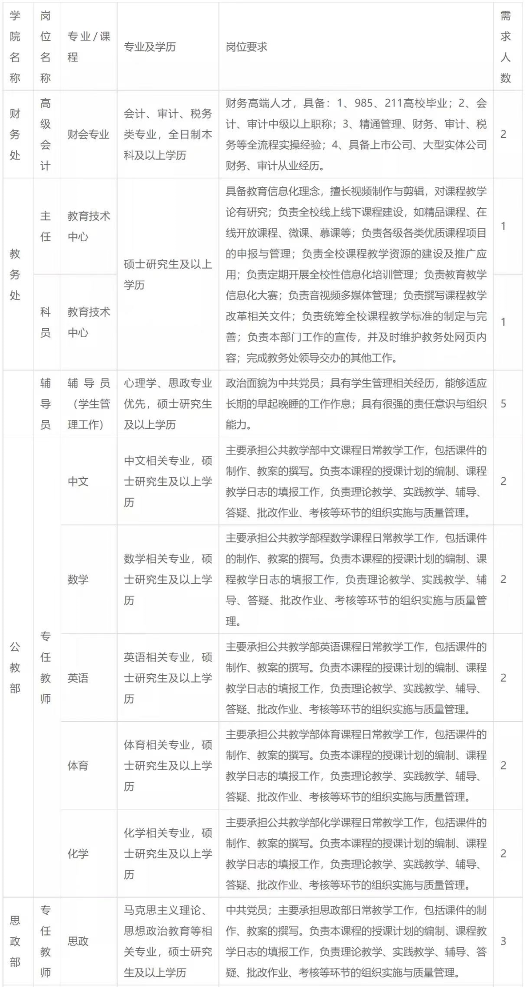 聘请具有副高以上职称或双师资格的教师担任骨干教师、专业带头人等。要求具有高校管理工作经历,硕士研究生及以上学历。