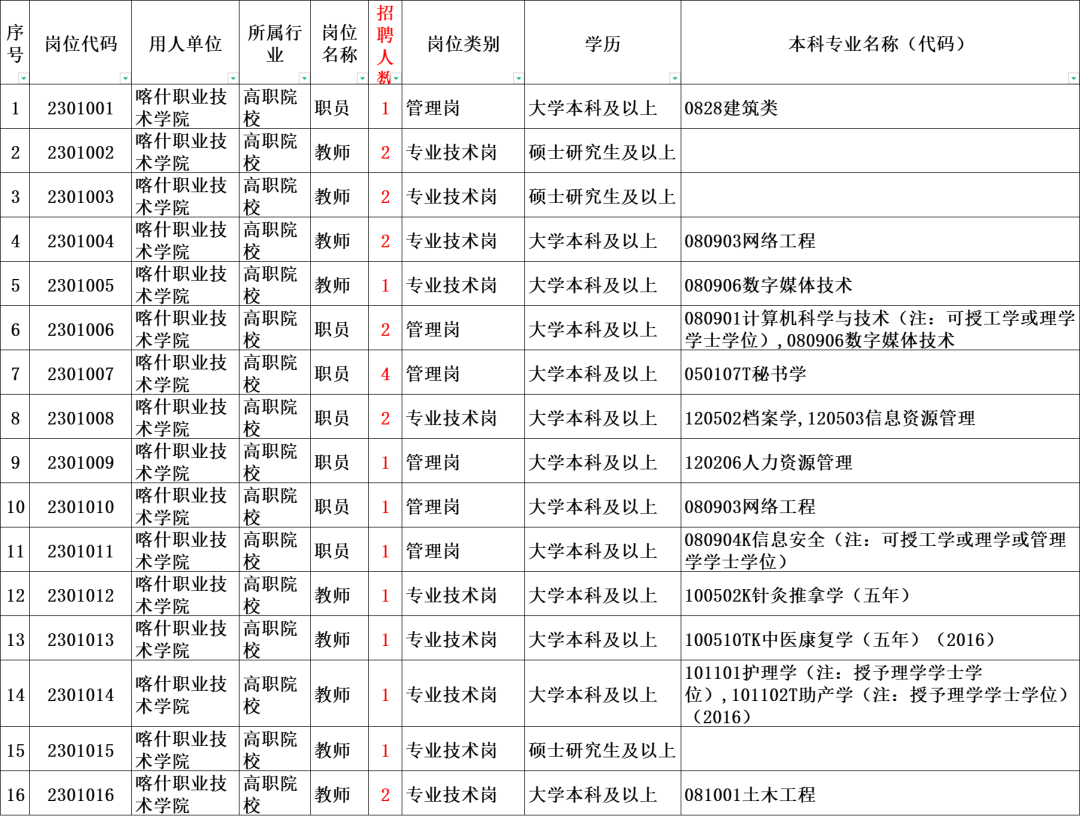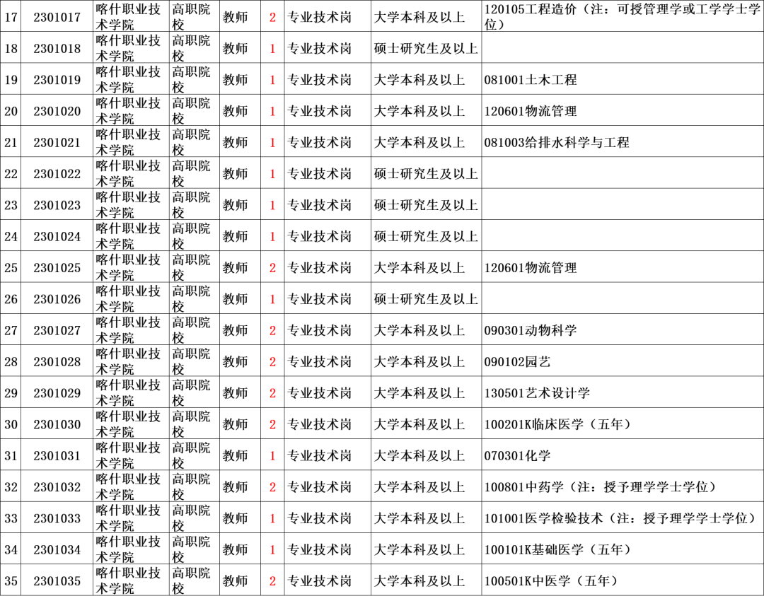 2023年喀什地区事业单位急需人才引进教师80人公告