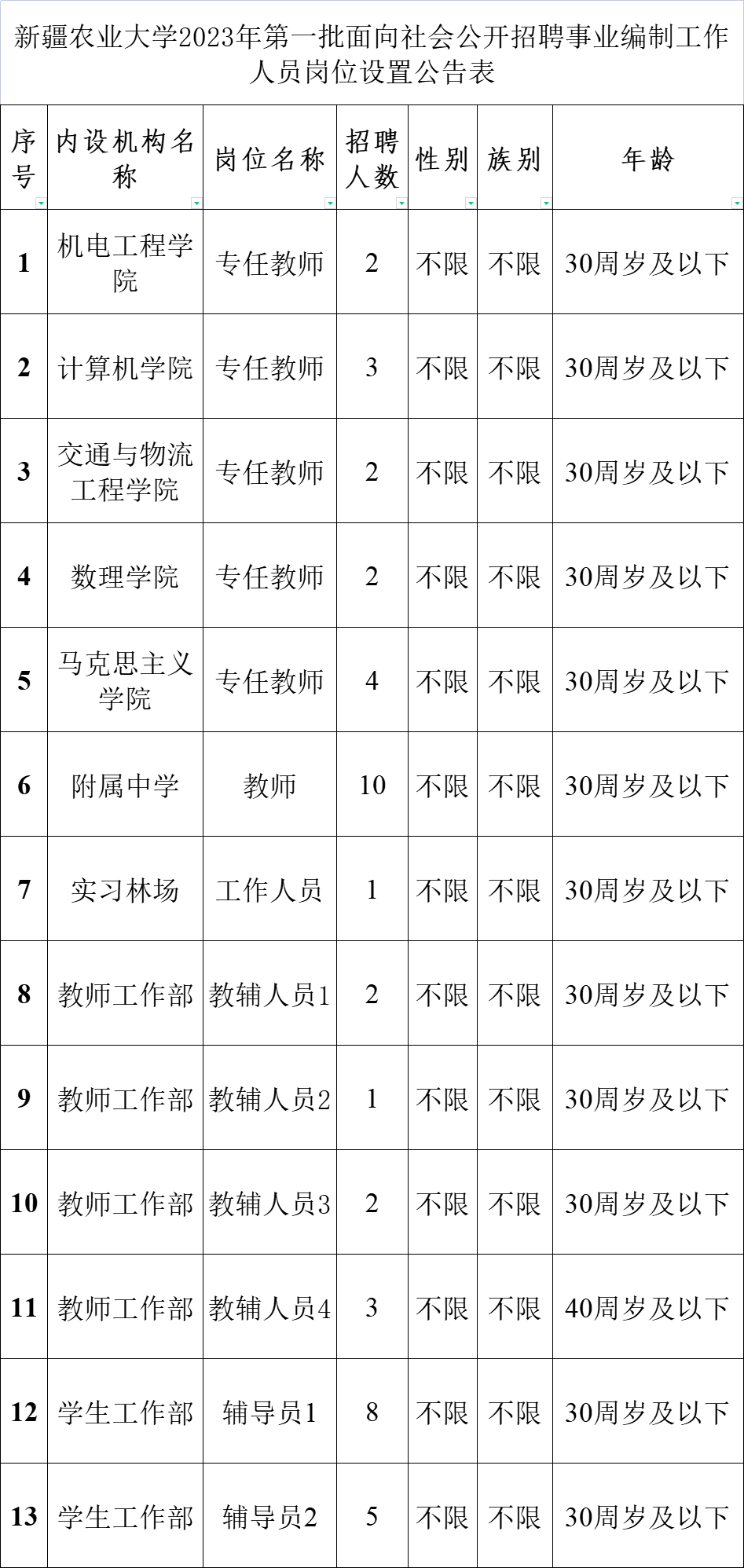 2023年十三师新星市面向社会公开招聘特岗教师22名,岗位表见附件1。