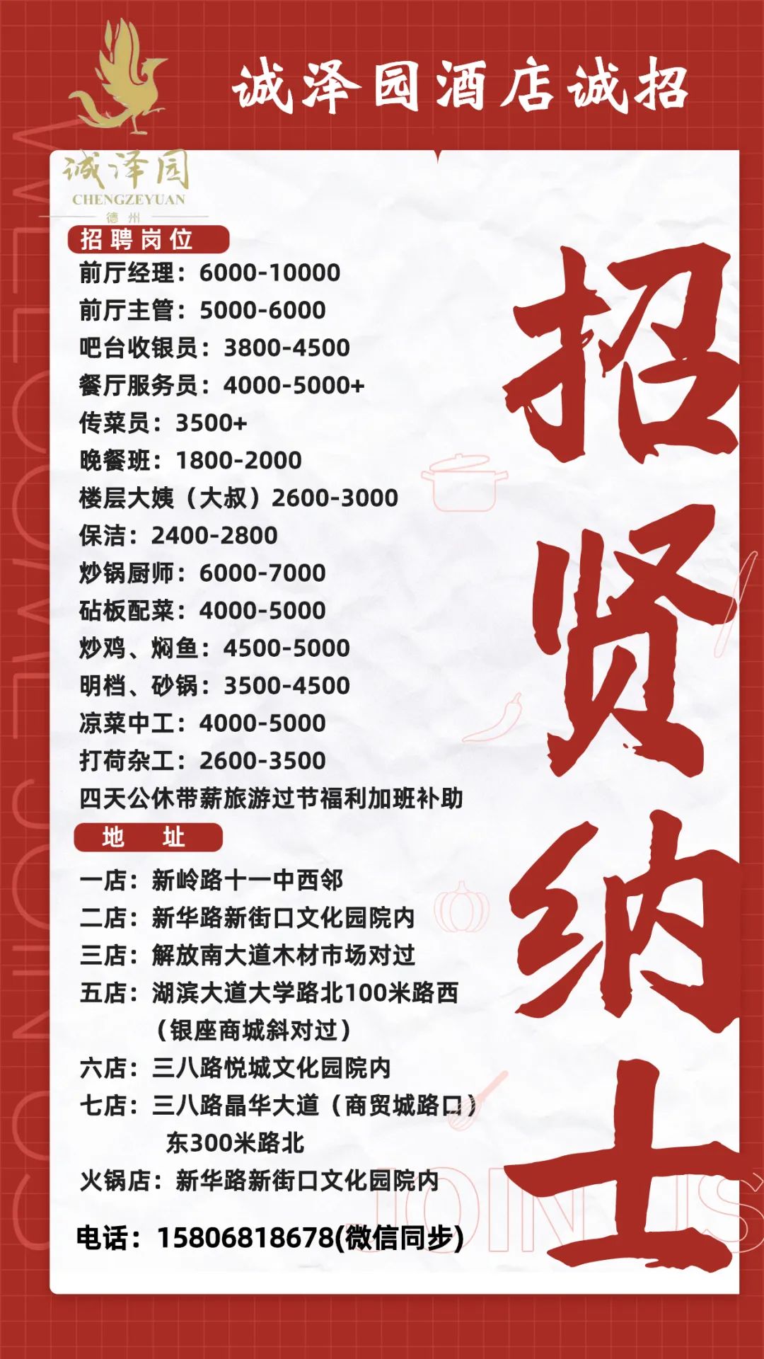 工作地点:德州经济开发区东方红路2327号(嘉诚东郡A区南门对面)