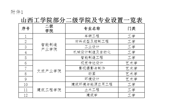 附件1.山西工学院部分二级学院及专业设置一览表.doc