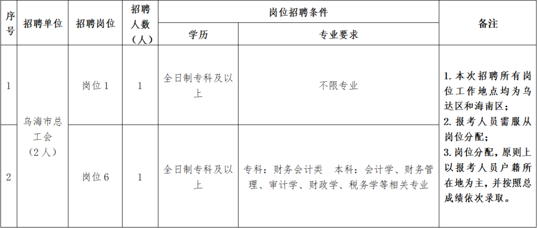 本次招聘由乌海市总工会聘请第三方公司统一组织实施,面向社会公开招考。
