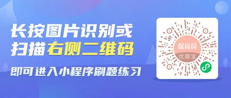 保育员招聘考试理论处级题库及答案是优题宝题库根据 保育员招聘考试理论处级科目整理的试题集(参考答案见文章末尾)。你也可以通过“保育员考试优题宝”小程序进行刷题练习,支持对保育员招聘考试理论处级考点进行专项练习,查漏补缺巩固知识点,充分利用碎片化的时间学习 保育员招聘理论处级题库,祝你考试顺利通过!