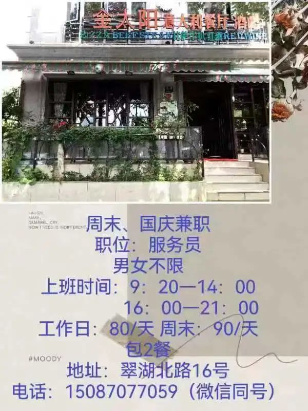 ️工作时间&地点及工资:五一期间,工作地点就近安排,具体安排私聊,工作8小时制(不包括吃饭时间),吃住自理。工资月结打卡,统一5月20号前后发放,需提供本人身份信息
