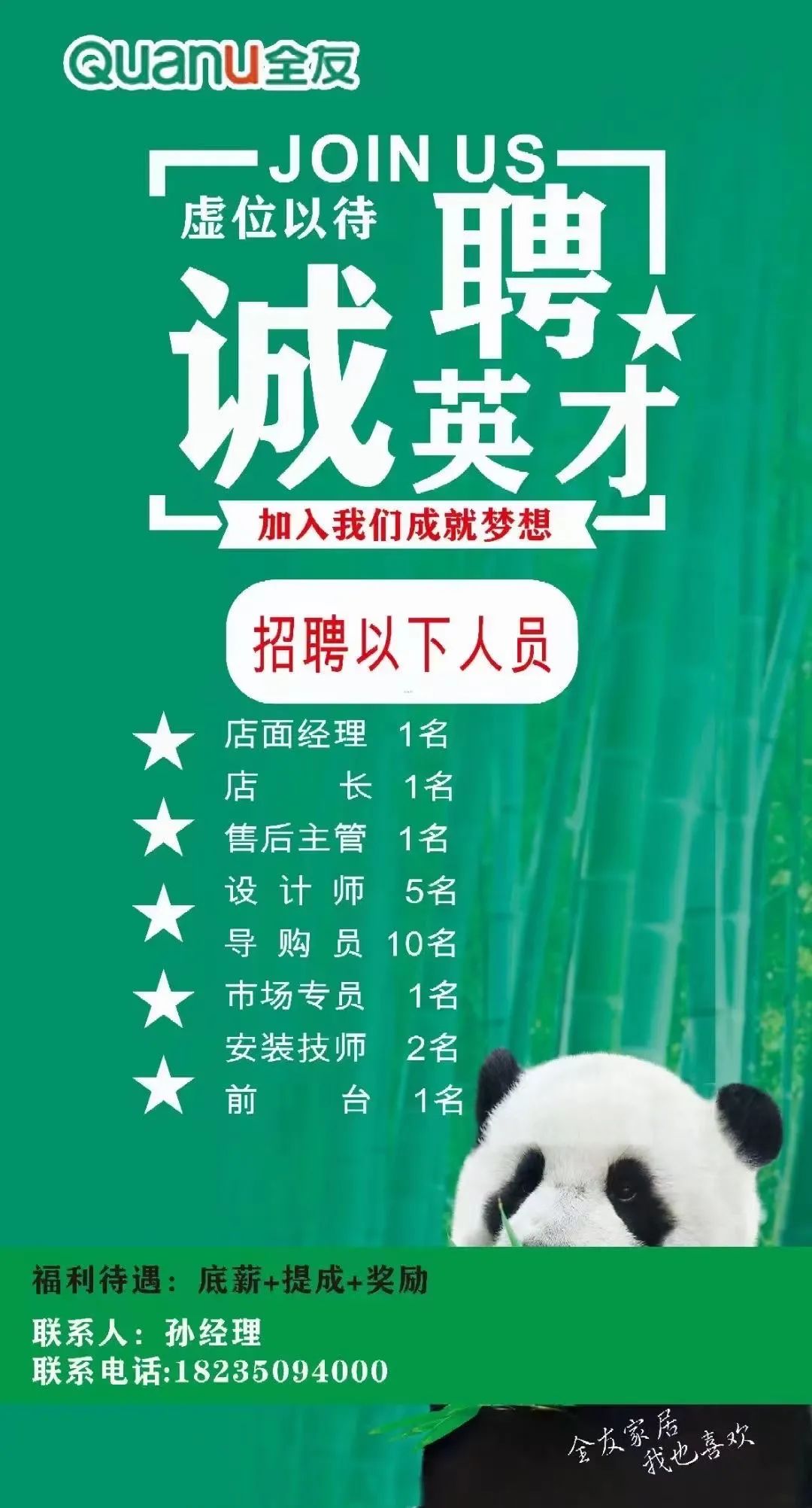 招聘.优秀成品导购.优秀定制导购.安装技师. (孙俪:18235094000)