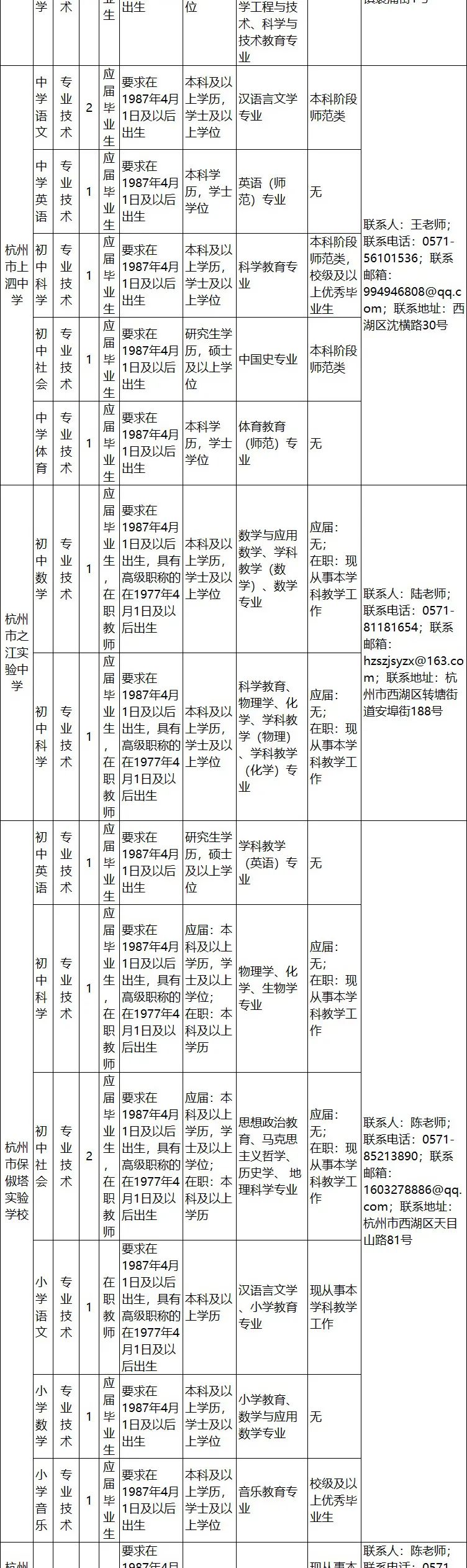 杭州市西湖区教育局所属杭州市西湖高级中学等事业单位,因工作需要公开招聘教师151名(含风景名胜区)。