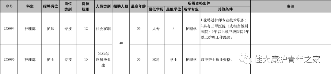 一、招聘岗位因医院业务发展需要,拟补充护理人员40名,具体要求详见附件。