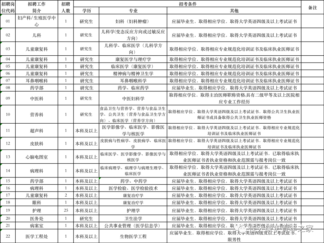 7、法律、政策规定不得聘为事业单位工作人员的其他情形的人员。招聘工作在市卫健委的领导下由医院具体实施,招聘全程接受卫健委监督。对考生资格审核贯穿招聘全程,一经发现报考人员不符合方案规定或不符合招聘职位资格条件或提供虚假信息(含考核期间提供的证明材料等),立即取消考试、聘用资格或解除聘用合同。