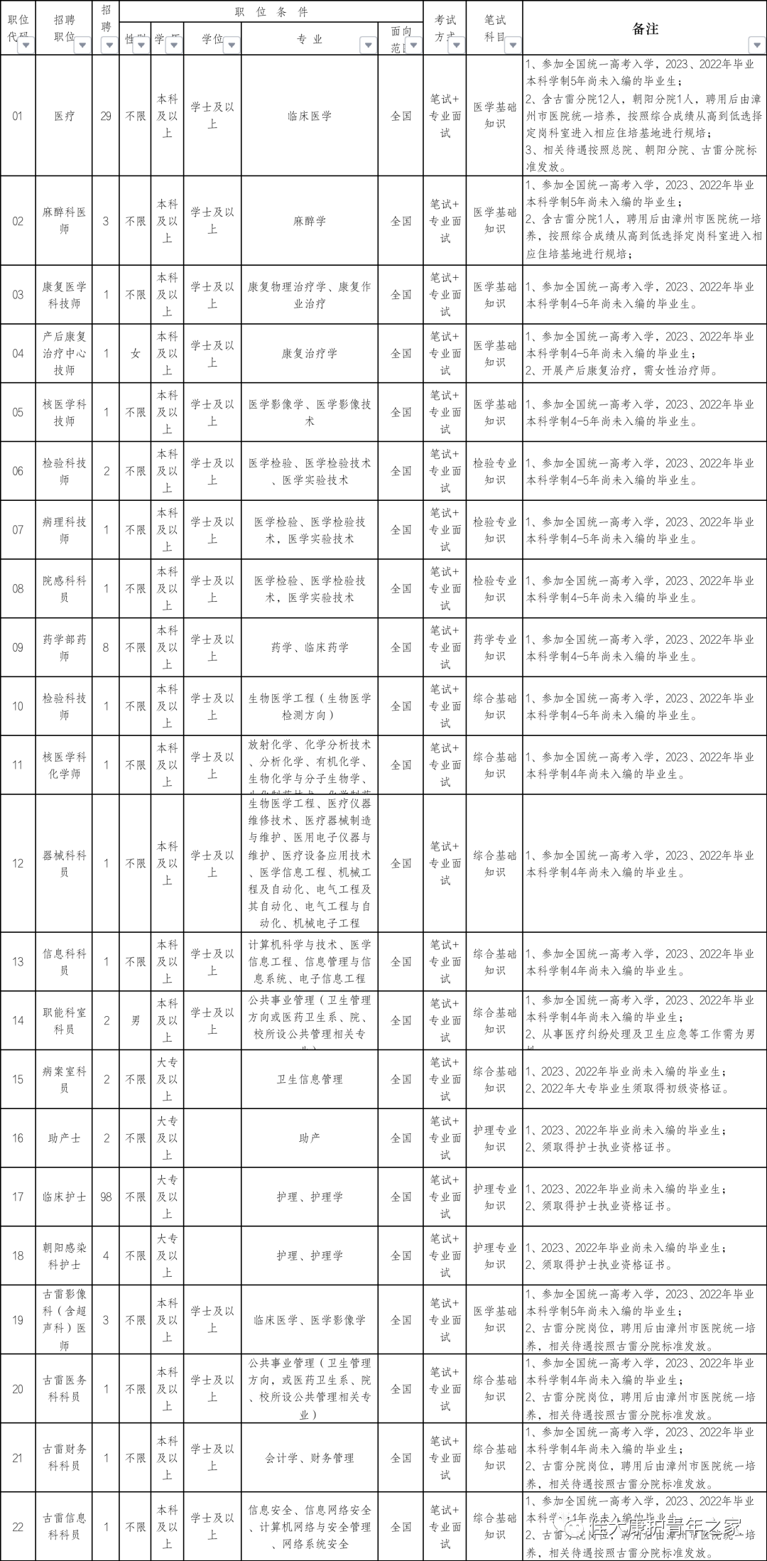 本次特招医学院校毕业生31名,具体岗位及条件详见附件《2022年内乡县特招医学院校毕业生职位表》。
