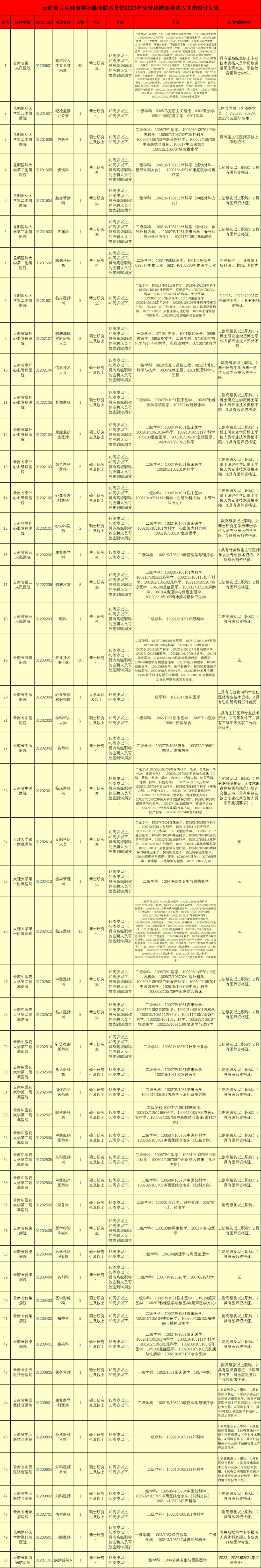 1.云南省卫生健康委所属和联系单位2023年公开招聘高层次人才岗位计划表