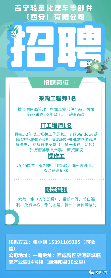 吉宁轻量化汽车零部件(西安)有限公司由宁波吉宁汽车零部件有限公司在空港新城设立全资子公司投资建设,总投资约10.1亿元,总占地140亩,年产1000万片热冲压成型件。预计可实现年产值约9亿元。现因发展需要招聘以下岗位: