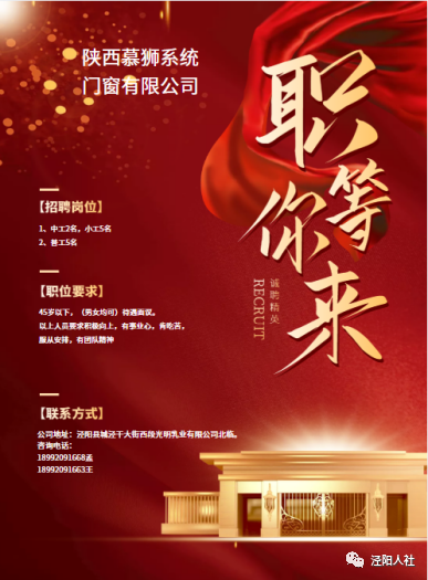 以上人员要求积极向上,有事业心,肯吃苦,服从安排,有团队精神,公司管食宿,工资按时发放。