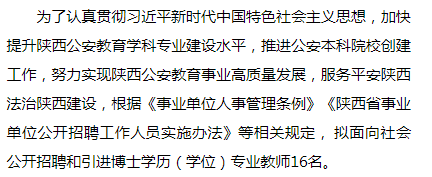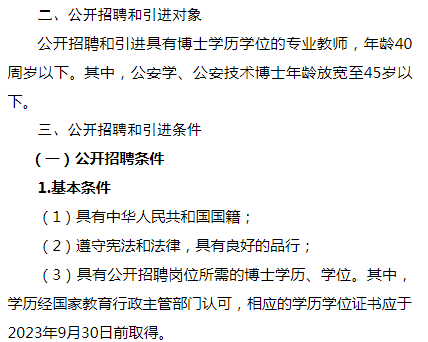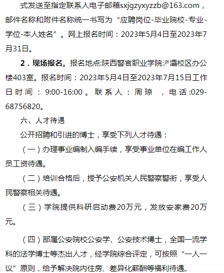 陕西警官职业学院2023年公开招聘和引进博士学历教师计划表及联系方式
