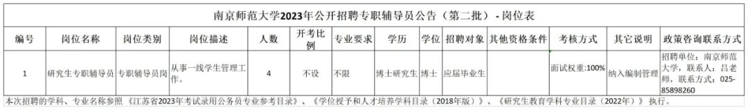 南京师范大学2023年公开招聘专职辅导员公告(第二批)-岗位表.xlsx
