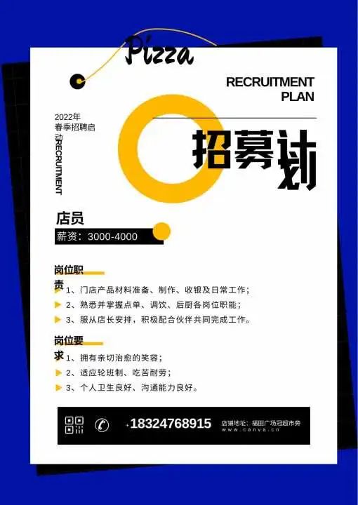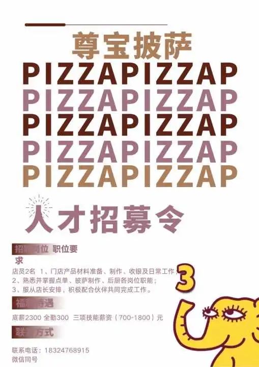 (长按二维码查看详情)▼【尊宝披萨店员】2000-3000元 招聘2人