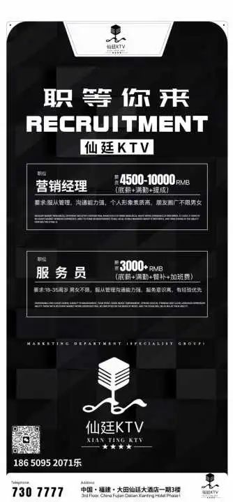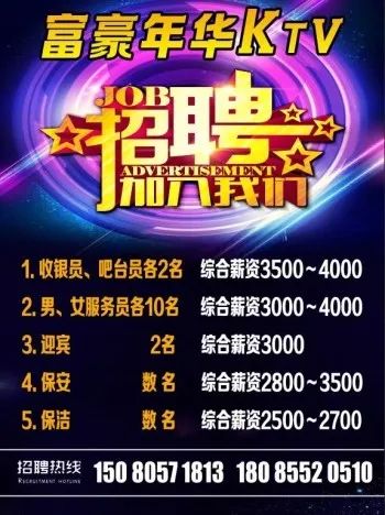(长按二维码查看详情)▼【收银员、吧台员、服务员、迎宾、保安、保洁】2500-4000元 招聘人数:若干