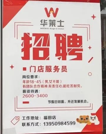 (长按二维码查看详情)▼【华莱士服务员】2600-3400元 招聘人数:若干