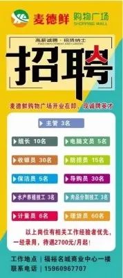 (长按二维码查看详情)▼【收货员、收银员、营业员、保安、保洁】面议 招聘人数:若干