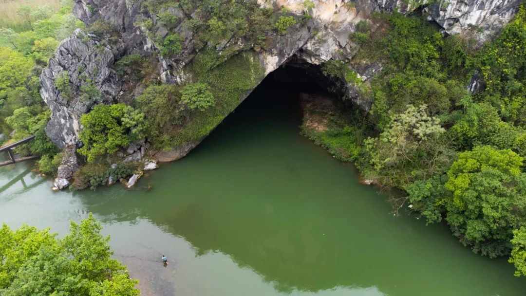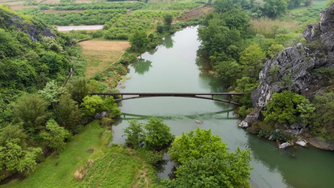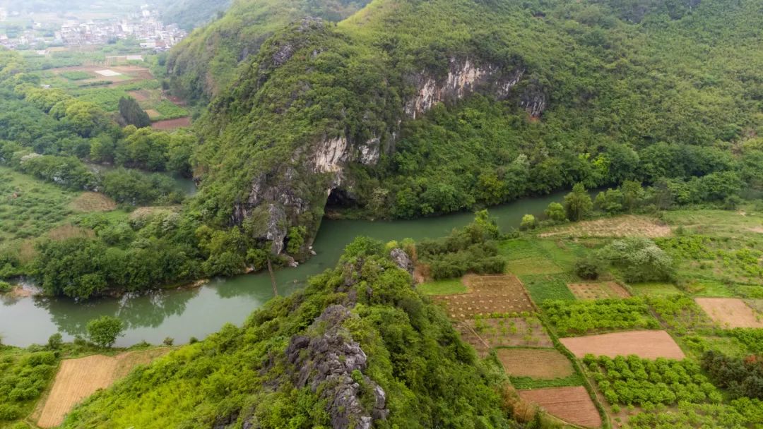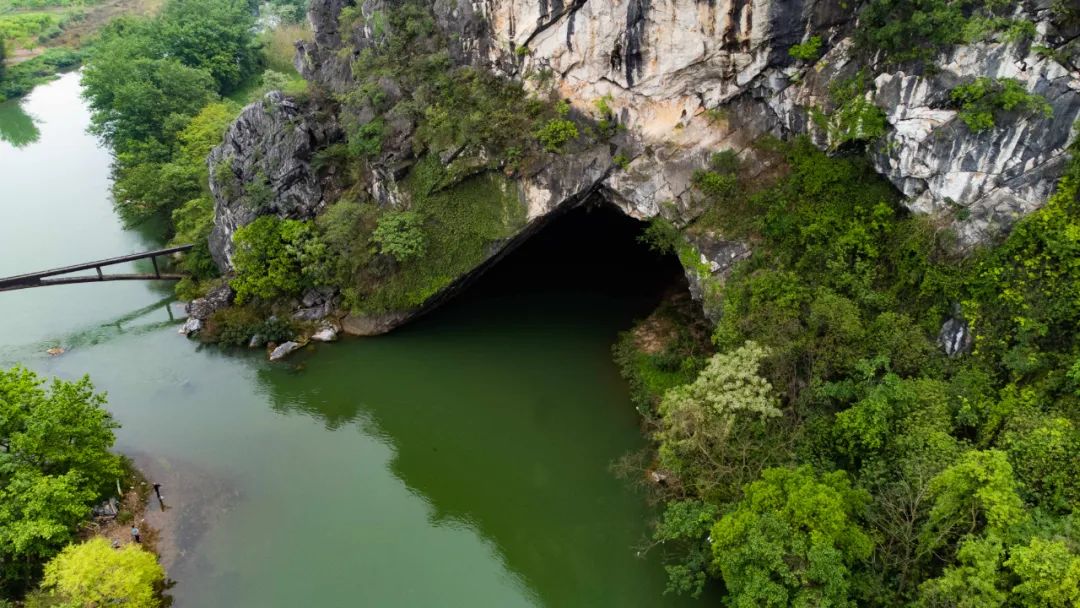 虎尾山的另一个独特之处在于,山体外侧绿水环绕,临水一侧有一岩口水流可以直接穿山而过,若是加以想象,我们便可以将此处当做虎口,与虎尾形成首尾呼应之势。