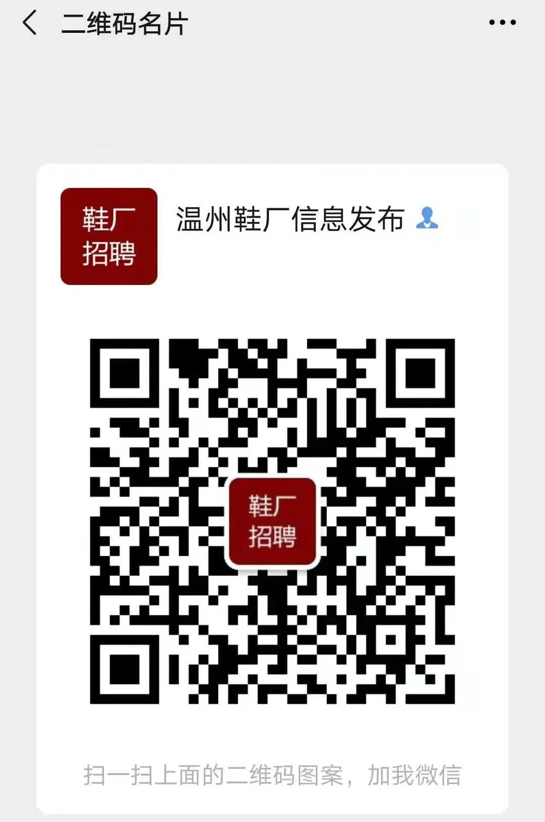 做鞋的朋友加微信 WZXC658 。发招聘求职信息,拉你进行业微信群,扩大人脉,朋友圈同步更新招聘求职信息,信息免费发布,我们只是发布信息,找工作要注意辨别