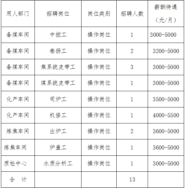 详见《丰城新高焦化有限公司公开招聘岗位职责及要求》
