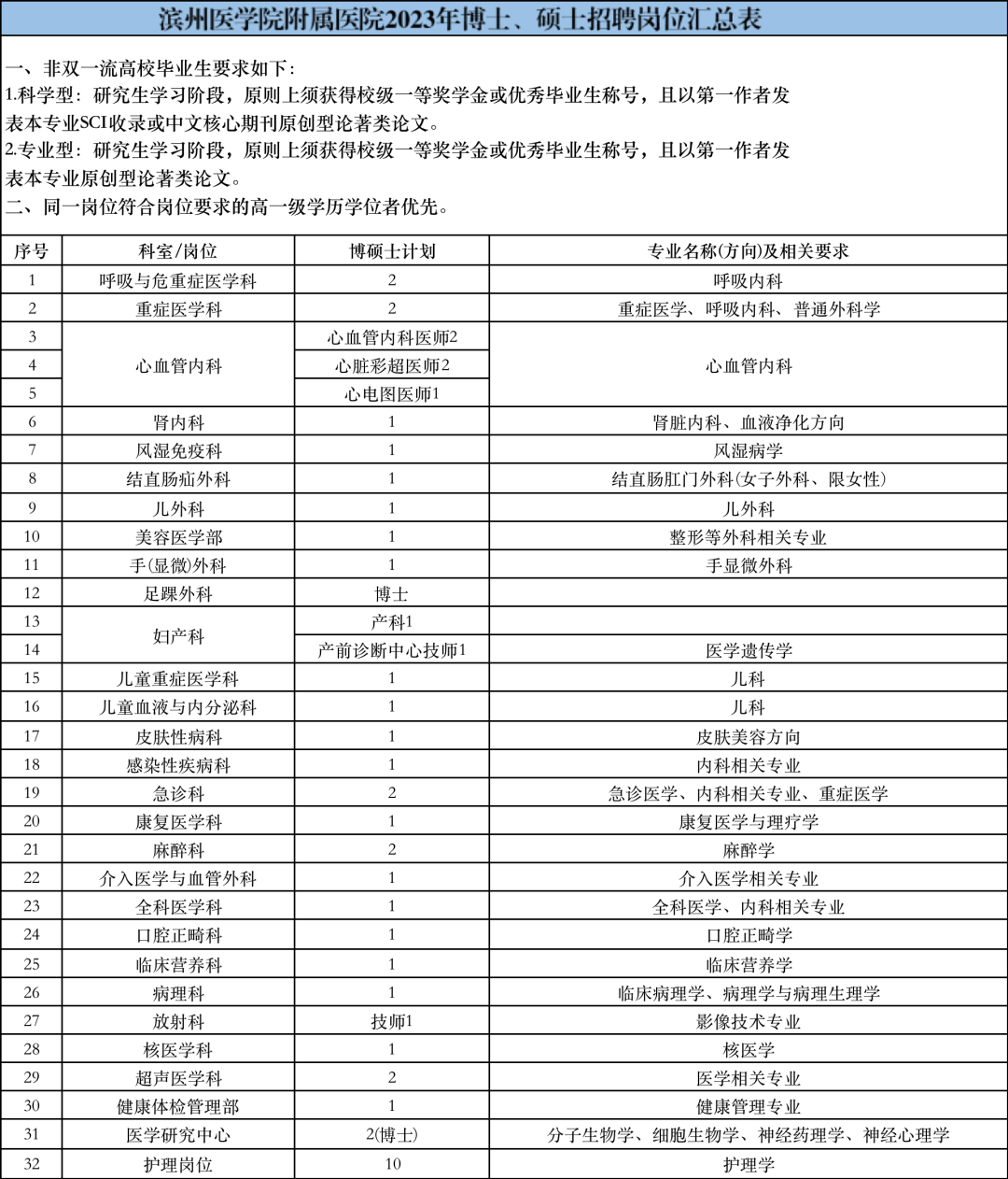 2.具体标准条件和相关待遇,详见医院博士后研究人员招聘公告(http://zzrs.byfy.cn/)。博士研究生招聘