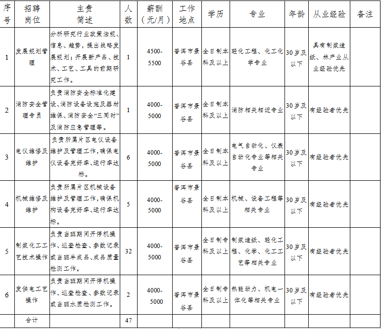 云南云景林纸股份有限公司 云南云景林业开发有限公司 云景飞林(普洱)新材料有限公司2023年度招聘简章