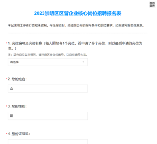 4.报名实行告知承诺制。报考人员应如实填写二维码报名。报考人员对填报的个人信息进行承诺和负责,如因填写错误或信息未填写完整导致无法通过初步筛选,后果由报考人员本人自行承担。
