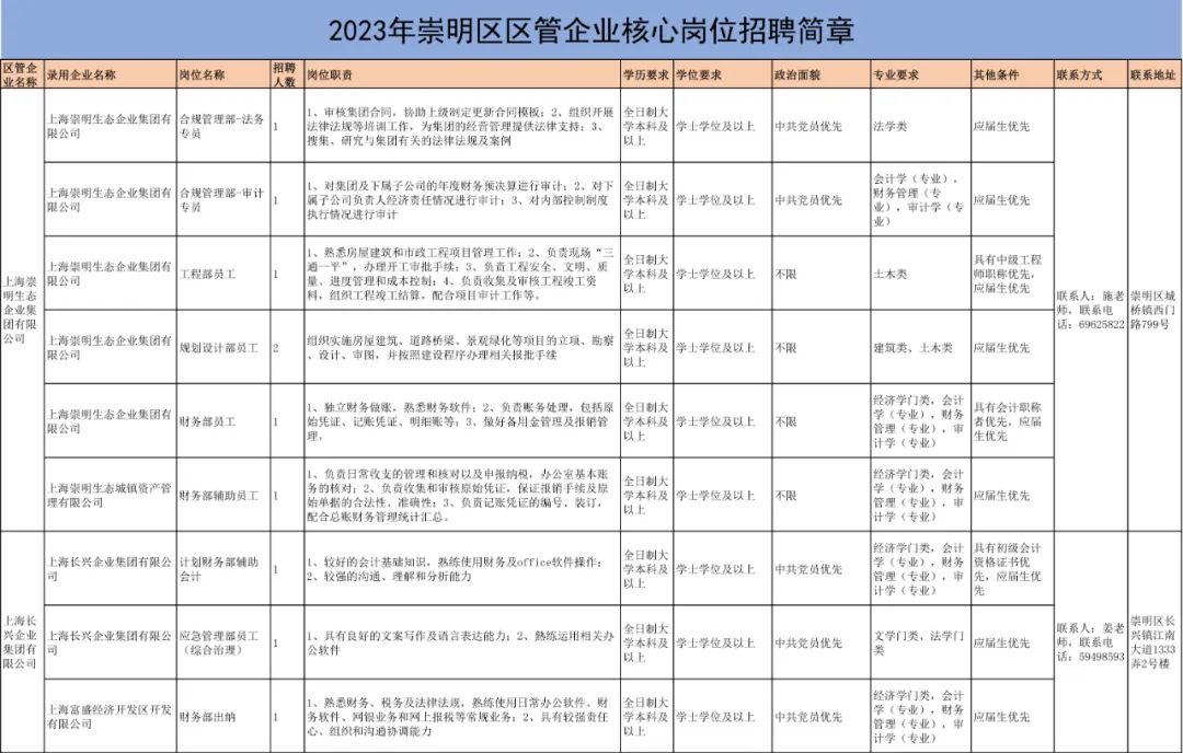 ↑↑↑可识别下载2023年崇明区区管企业核心岗位招聘简章