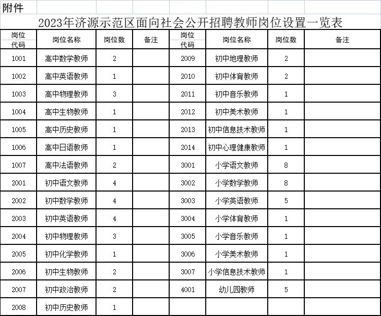 为促进济源教育事业高质量发展,加强教师队伍建设,根据《事业单位公开招聘人员暂行规定》(原人事部令第6号)、《河南省事业单位公开招聘工作规程》(豫人社〔2015〕55号)、《中共河南省委组织部 河南省人力资源和社会保障厅关于进一步加强和改进事业单位公开招聘工作的意见》(豫人社〔2016〕4号)、《人力资源社会保障部 教育部关于做好2023年中小学幼儿园教师公开招聘工作的通知》和济源示范区党工委编委会意见,结合济源教育实际,现制定2023年济源示范区面向社会公开招聘教师公告如下: