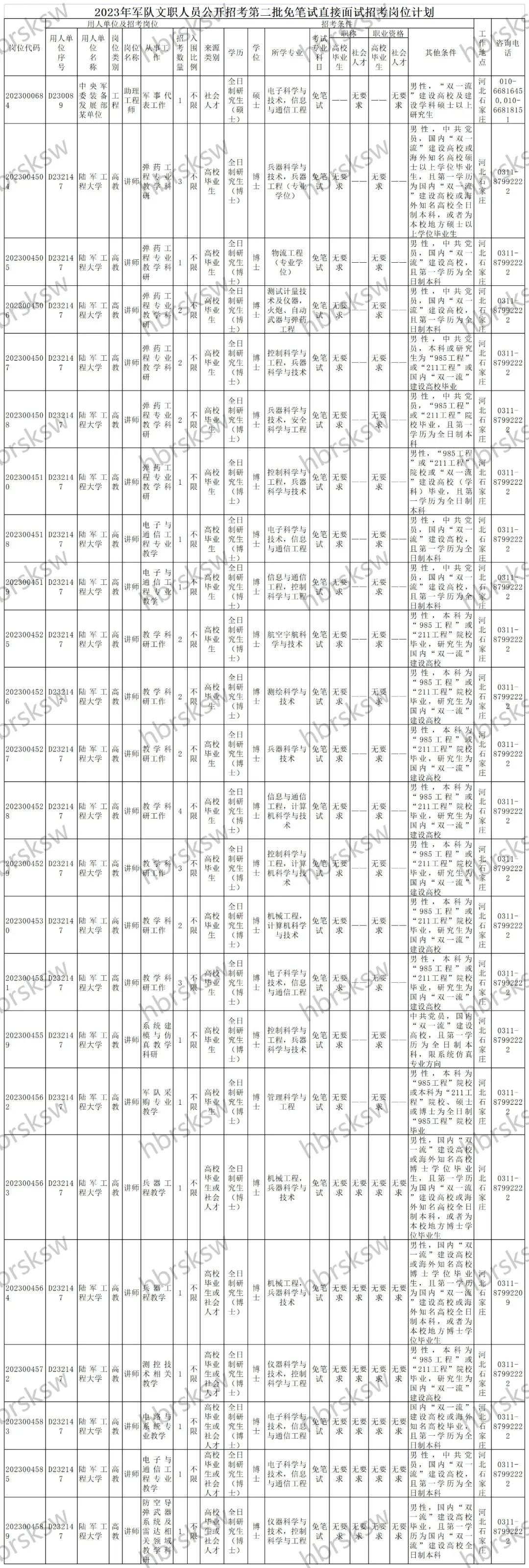 2023年军队文职人员公开招考5202名工作人员公告(第二批,河北131人)
