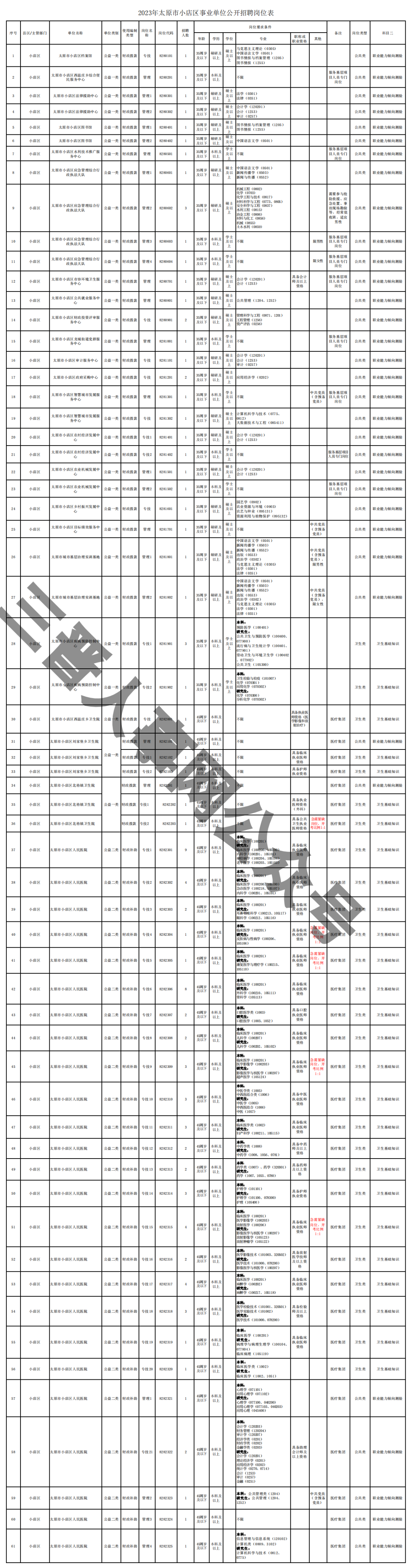 附件:2023年太原市小店区事业单位公开招聘岗位表.xlsx