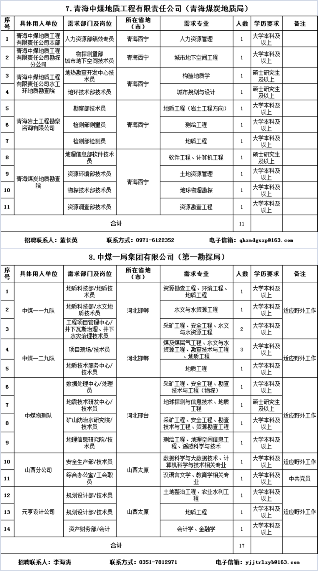 【兴县招才】山西有岗!中国煤炭地质总局2023年公开招聘346人公告!