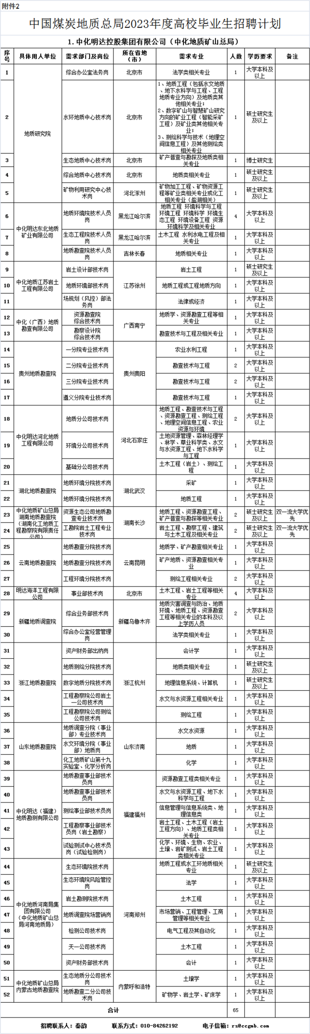 附件2、中国煤炭地质总局2023年度高校毕业生招聘计划