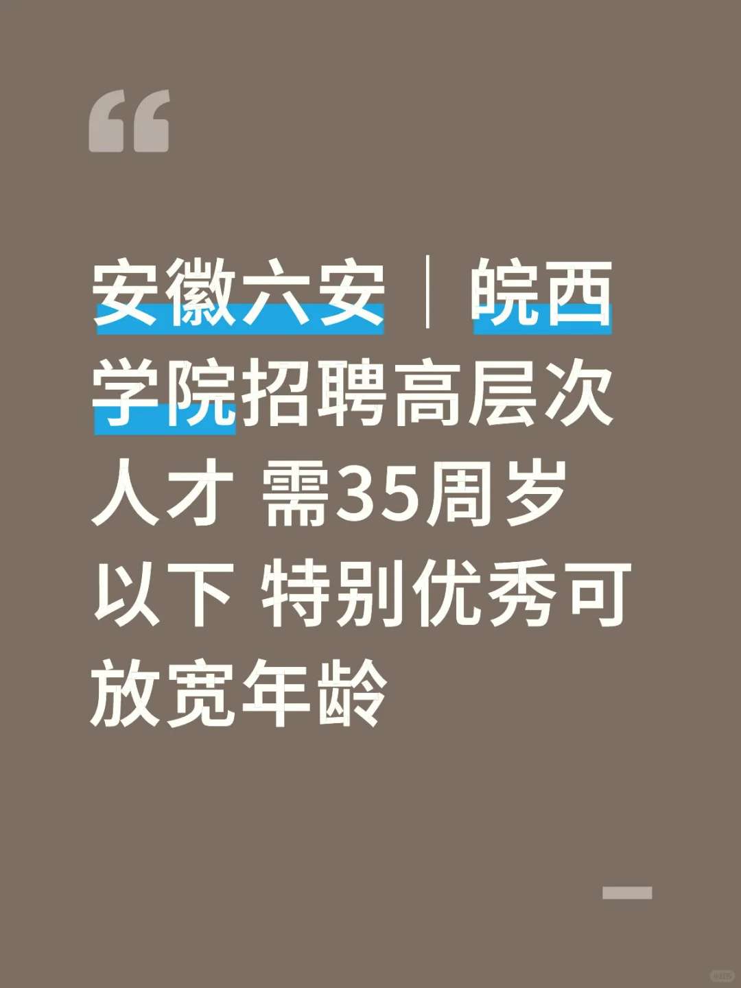 安徽六安|皖西学院招聘高层次人才 需35周岁以下 特别优秀可放宽年龄