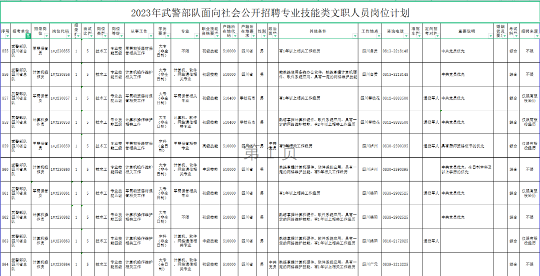 招聘岗位火热出炉!武警部队面向社会公开招聘技能类文职人员