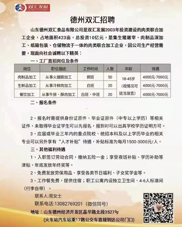 工作地点:德州职业技术学院内(德城区大学路689号)