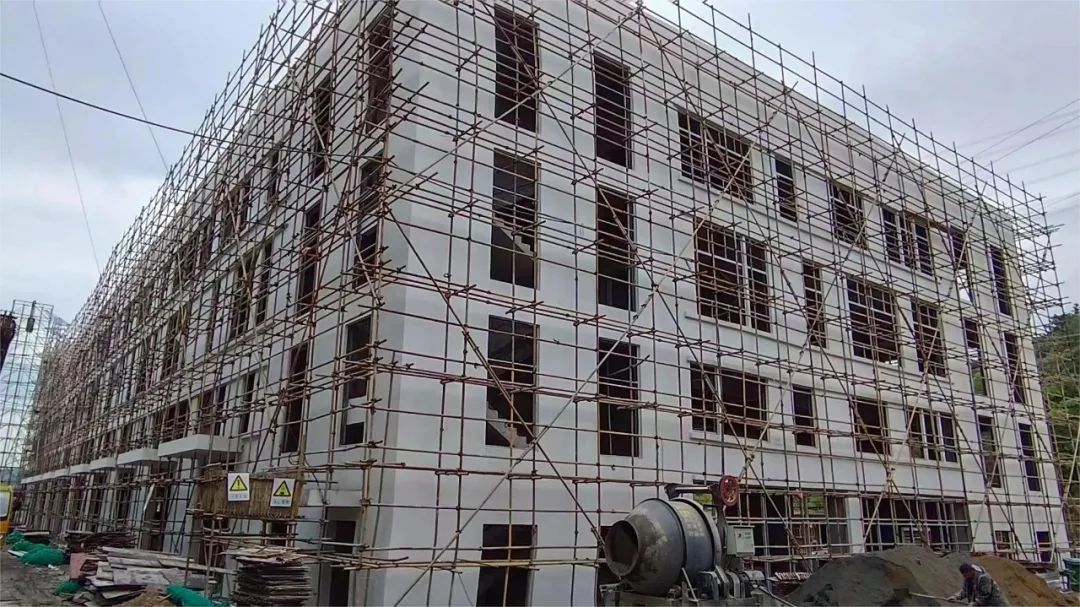 综合楼为新建地上五层建筑(其中一层为架空停车场),层高分别为2.8米、3.9米、3.9米、3.6米、3.6米,单层建筑面积为554平方米,总建筑面积为2966平方米(含电梯、楼梯、消防设施等)。